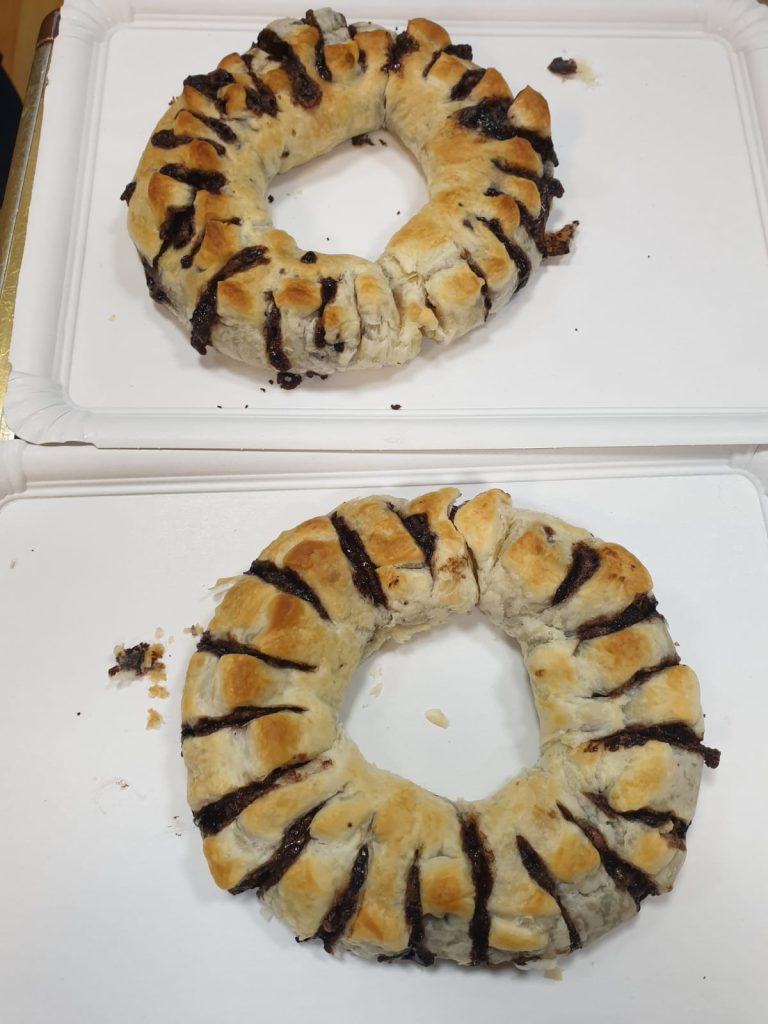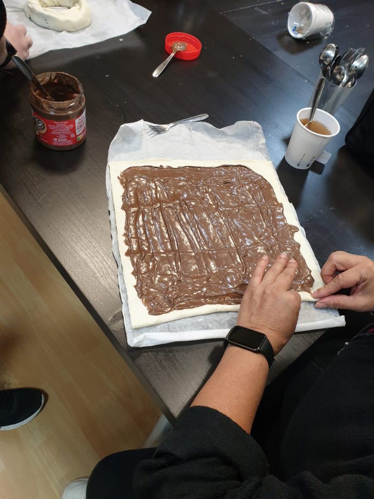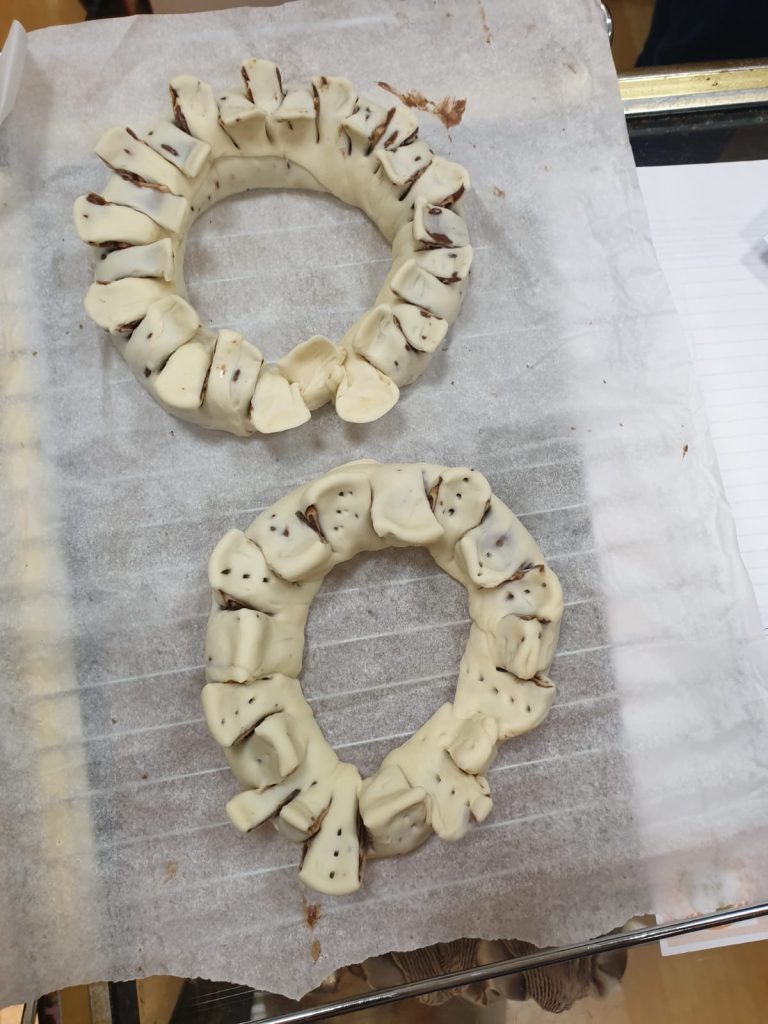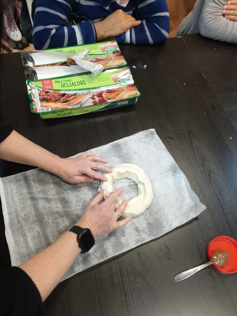 En el curso de repostería hoy se ha aprendido a hacer una corona de hojaldre.